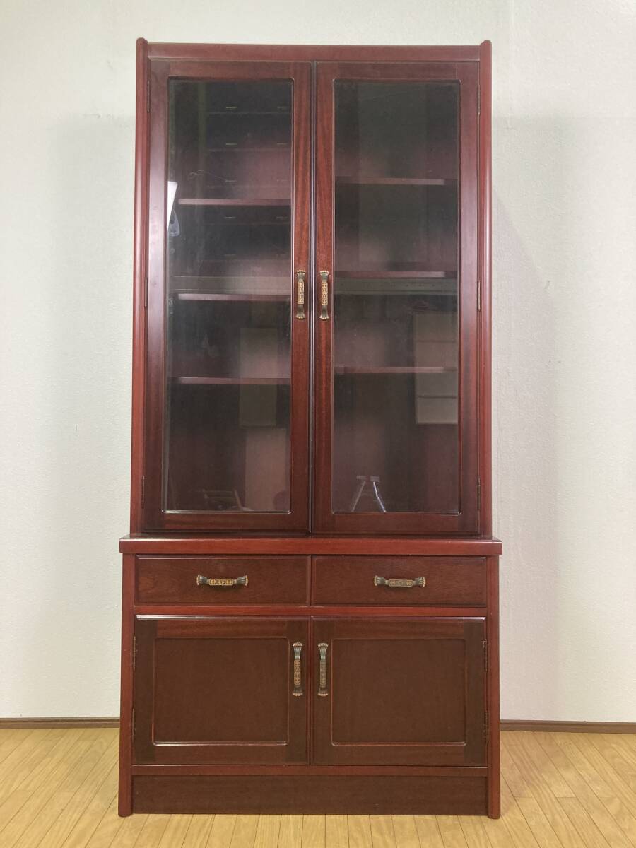 > ★大川家具★ ヴィンテージ 赤茶色 食器棚 飾り棚 本棚 キャビネット 90 サイドボード 木製 ガラス扉 激安 格安 大阪 引き取り可 レトロ