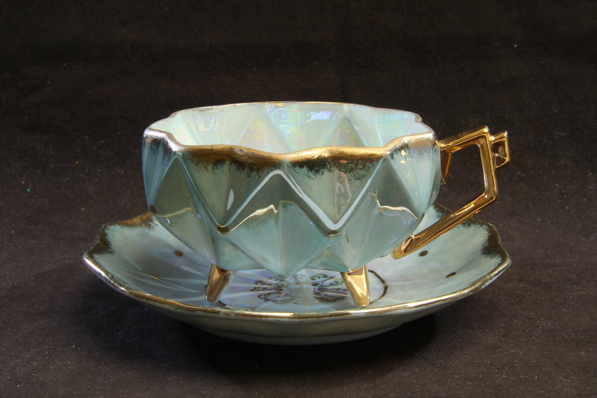 - 714 オールドジャパン カップ&ソーサ オールドノリタケと同時期 大正頃 royal Sealy 三脚台座 金彩縁取り ラスター 華絵柄