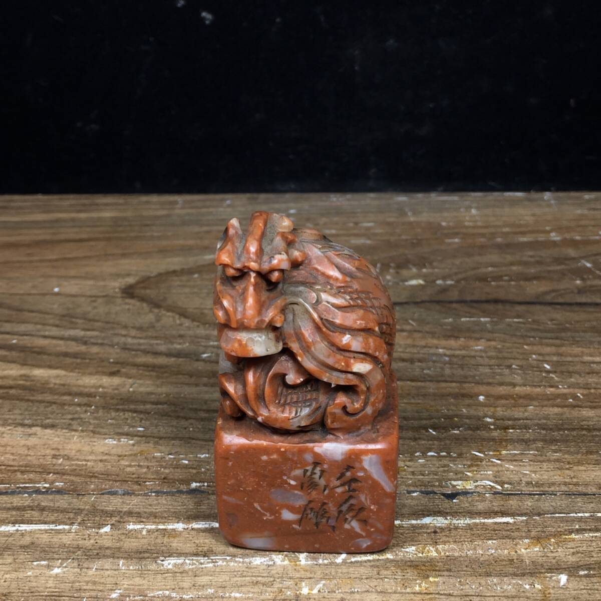 - 『館蔵珍品 寿山石 細密彫 神獣紋 印章 印鑒』文房具 書道品 貴重物品 収蔵品 中国古美術 時代物 古董品