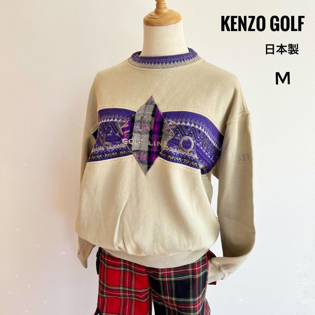 - KENZO ケンゾー ゴルフウェア メンズ ビッグ刺繍ロゴ スウェット セーター ニット 日本製 ベージュ M