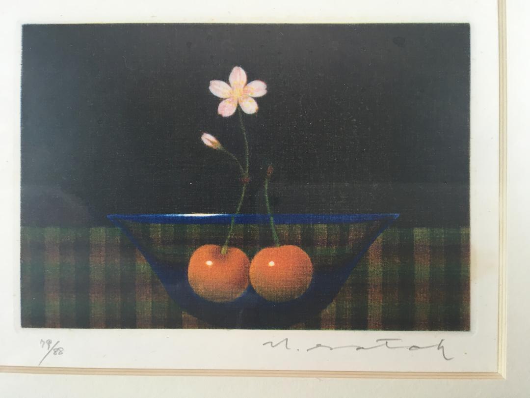 - [ 真作 佐藤暢男・サクランボ 銅版画 額 ]/エッチング/1993年作