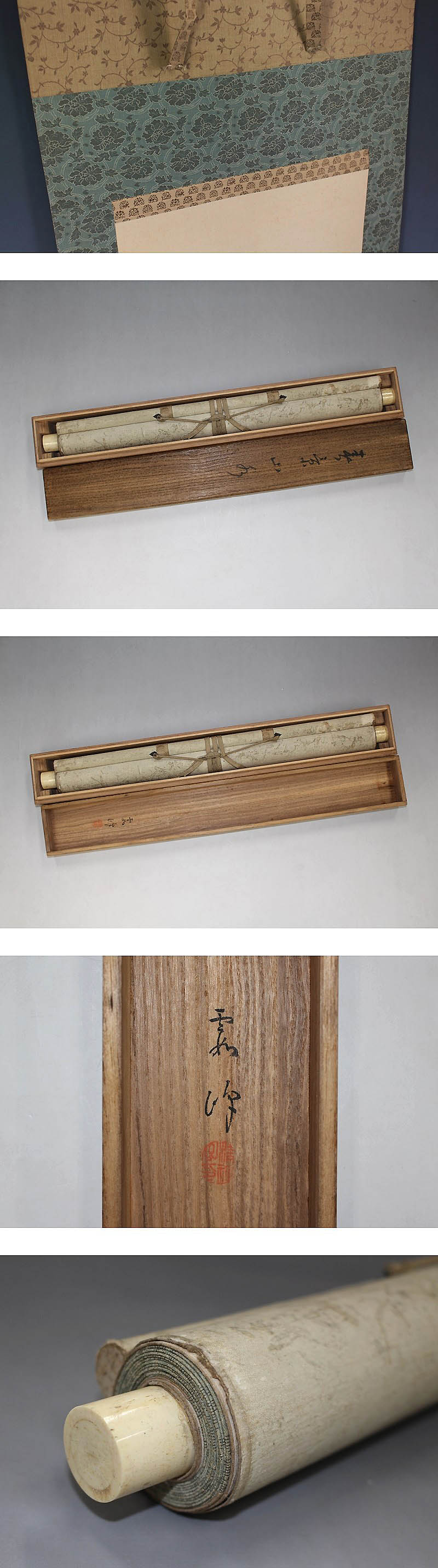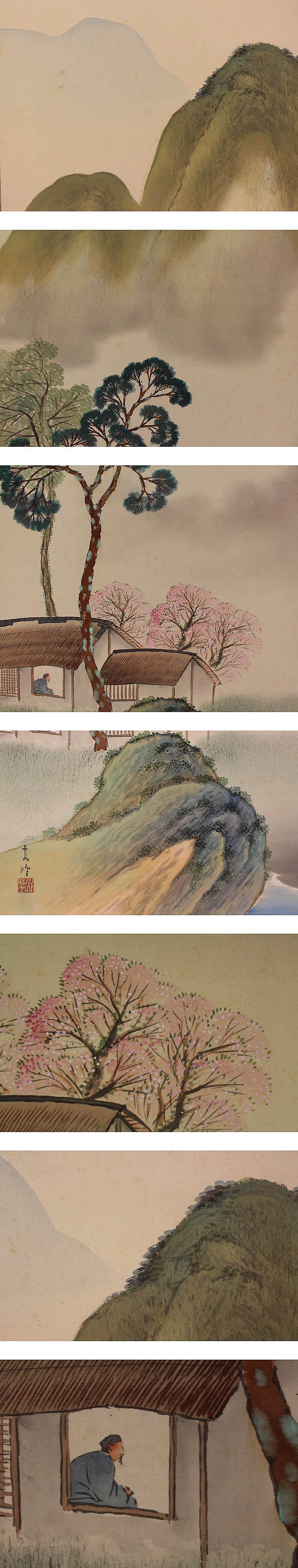 - 【真作】川北霞峰【春景山水】◆絹本◆共箱◆掛軸 1408028