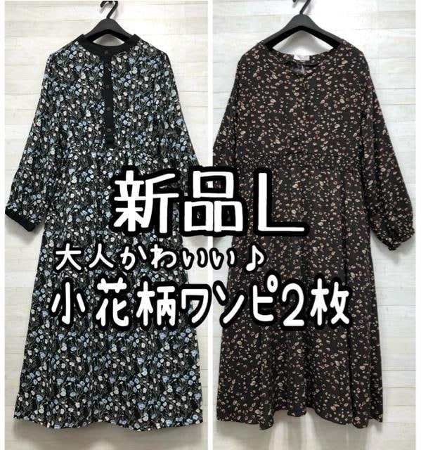 - 新品☆L♪大人も可愛い小花柄ワンピースを2枚セットで♪長袖ワンピ☆Q460