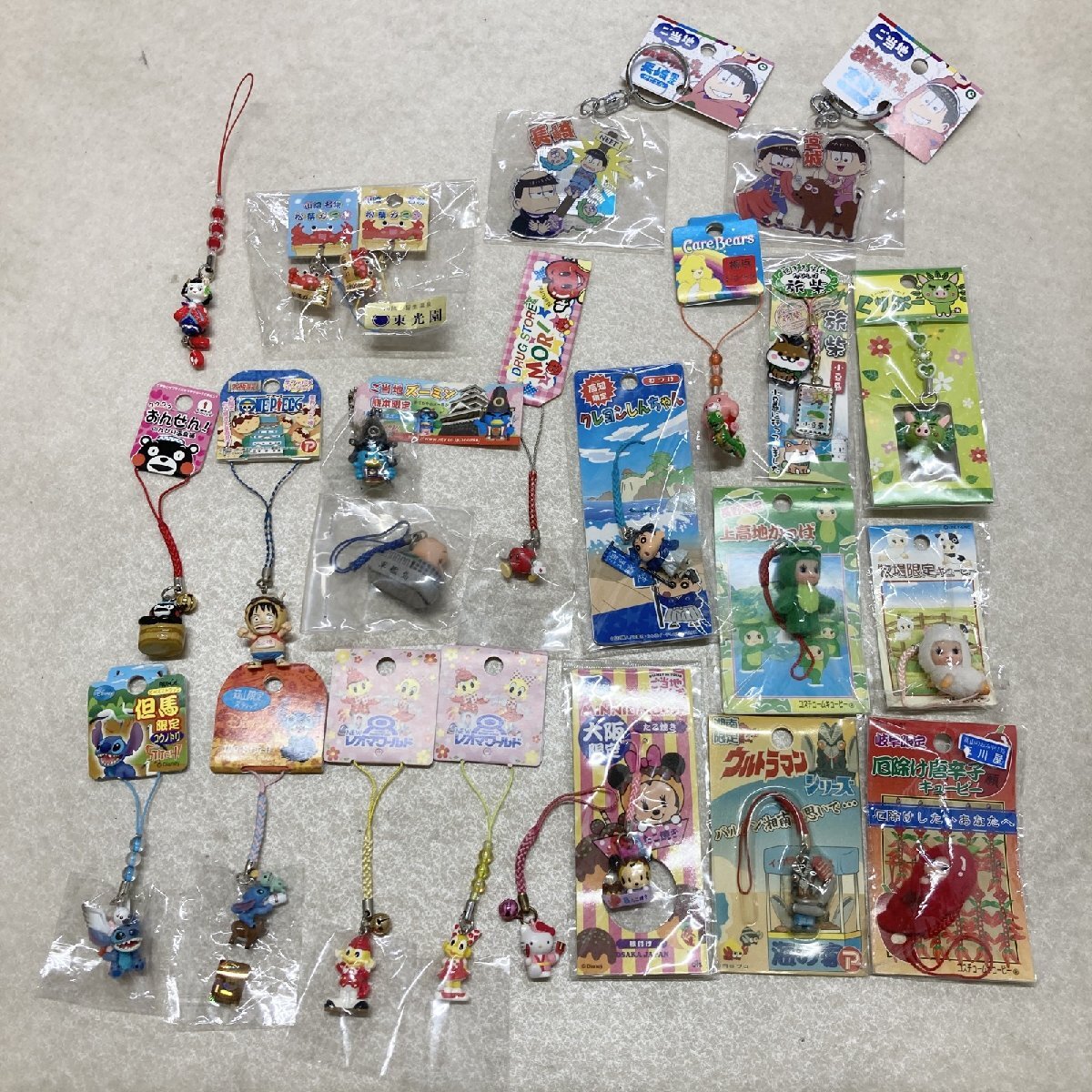 > ● ご当地 キーホルダー まとめ商品 ハローキティ キューピー スティッチ ルフィ おそ松さん 等 限定 根付け お土産 現状品 0.19kg