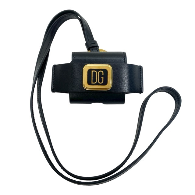 - ドルチェ&ガッバーナ Airpods ケース エアポッズケース イヤホンケース ネックストラップ ロゴ チャーム ブラック ゴールド DOLCE&GABBANA