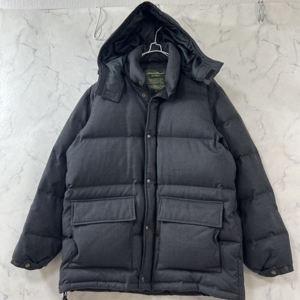 - 極美品 エディーバウアー 肉厚ダウンジャケット フード 羽毛 大きいサイズ ダウンコート メンズ XL相当 濃グレー系 Eddie Bauer B1618