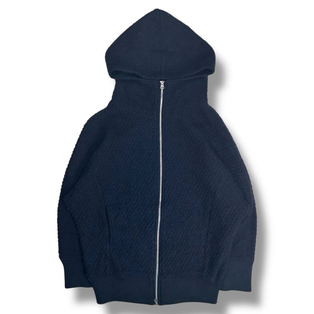 - (IT1008)zucca ズッカ ウールジャケット フルジップ ダブルジップ ヘビーアウター ウール ネイビー フード付き