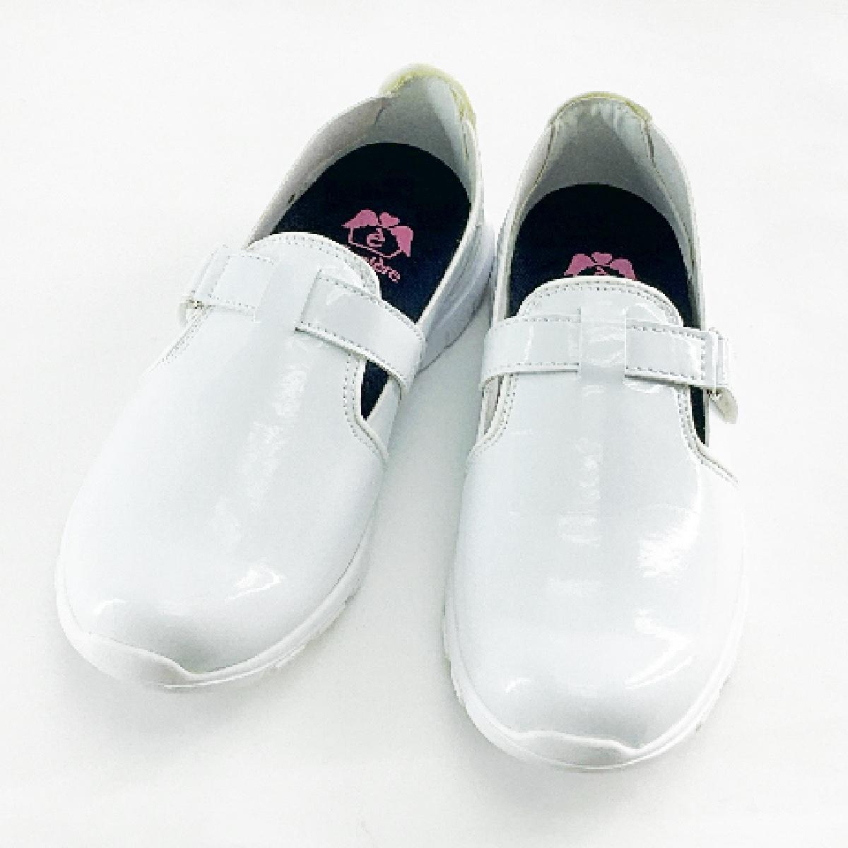 - 屈曲ソールシューズ 涼感フィット レディース 看護師 介護士 エナメル 23.0cm ホワイト