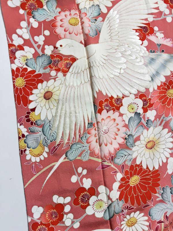 - ★きものさらさ アンティーク着物帯★鳩文様 訪問着 大正ロマン 刺繍 波 古典文様 正絹 古布 古裂 時代裂 モダン
