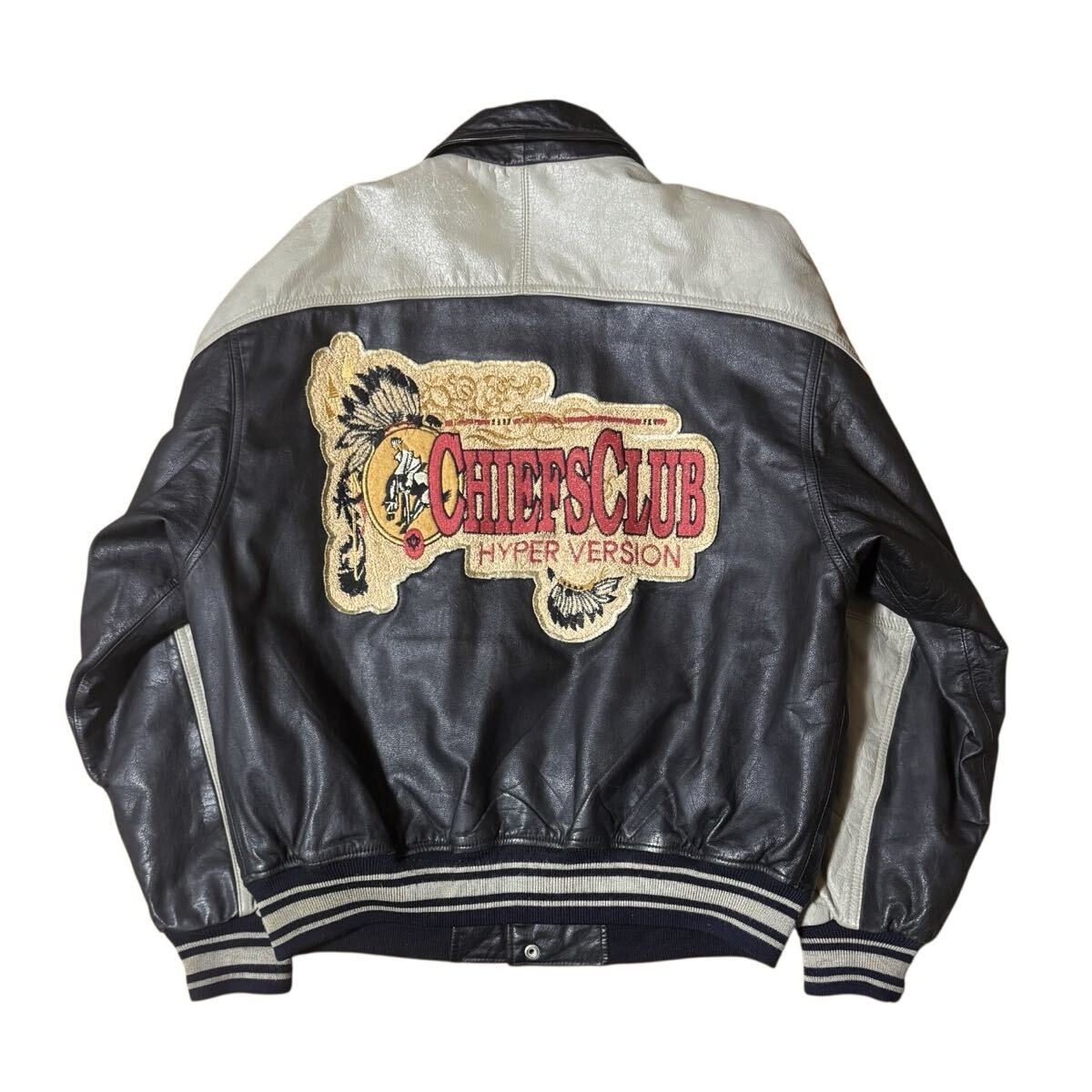 - 本革 バックロゴ 襟付き オールレザースタジャン M レザージャケット ブラック
