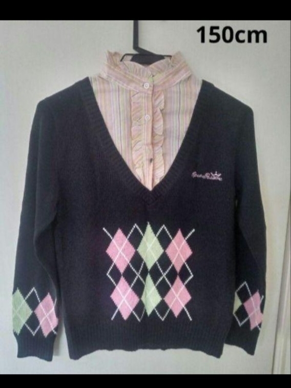 - キッズアーガイル柄 ブラックー セーター 150cmネイビー トップス 子供服