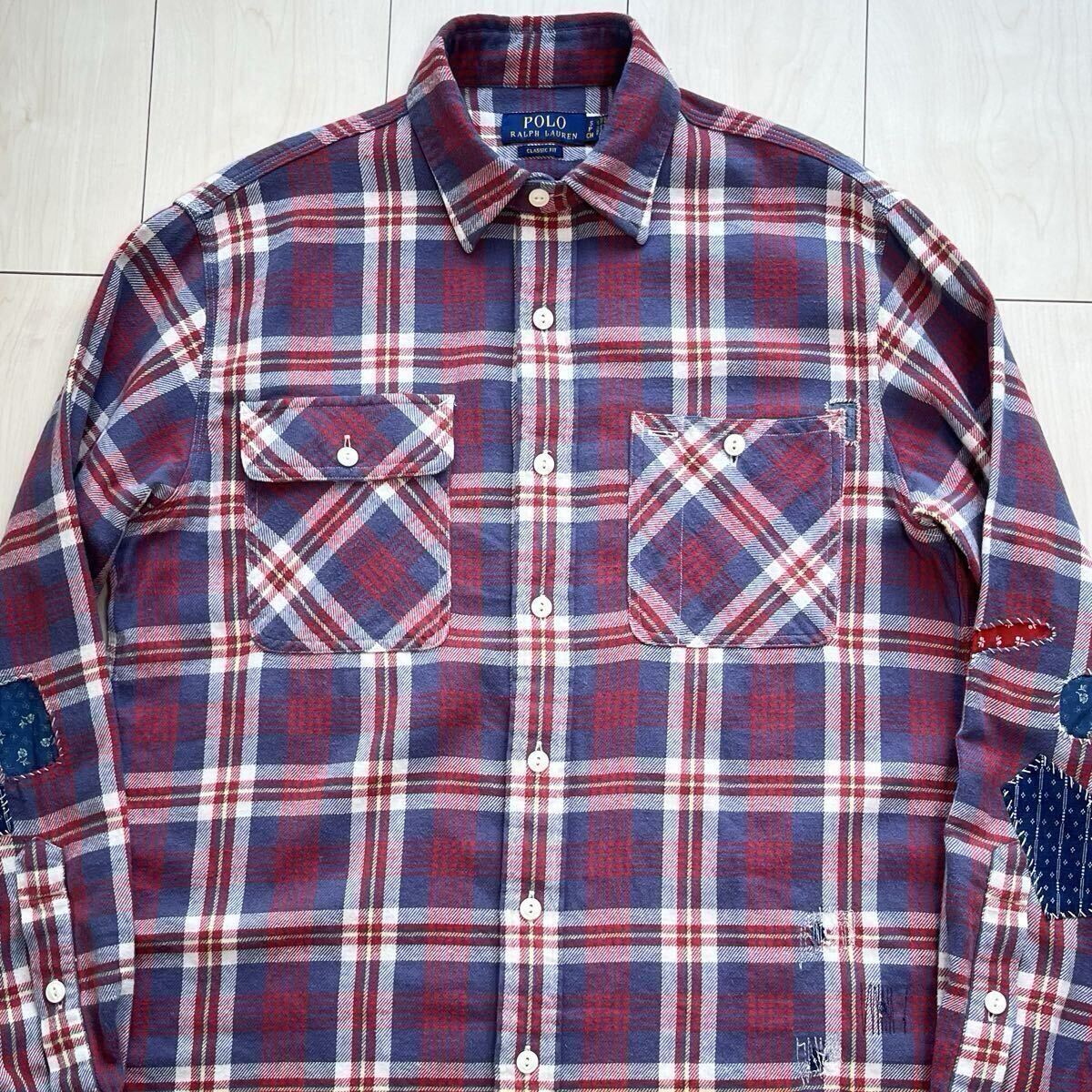> POLO RALPH LAUREN ポロラルフローレン リペア加工 チェック ネルシャツ 切りっぱなし S