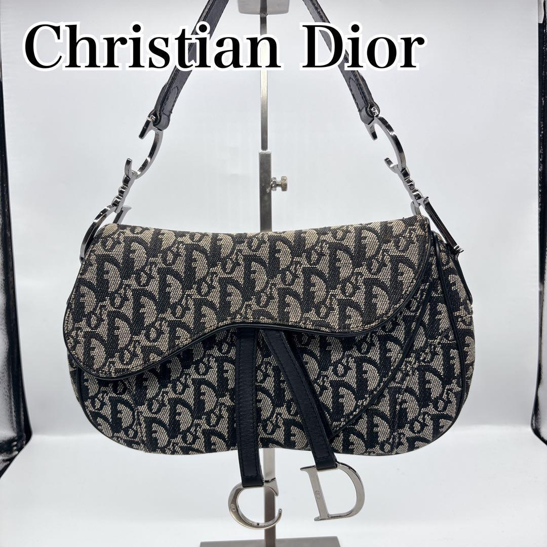 - Dior ディオール トロッター ダブルサドルバッグ ネイビー キャンバス