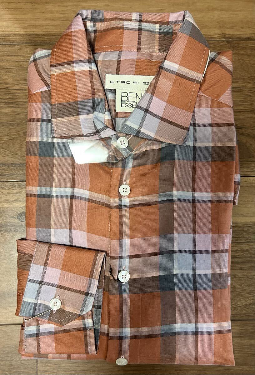 - 【新品タグ付】ETROエトロ コレクションシャツ(41サイズ)オレンジ系チェック柄/ETRO BENETRO ESSERE/長袖シャツ/イタリア製