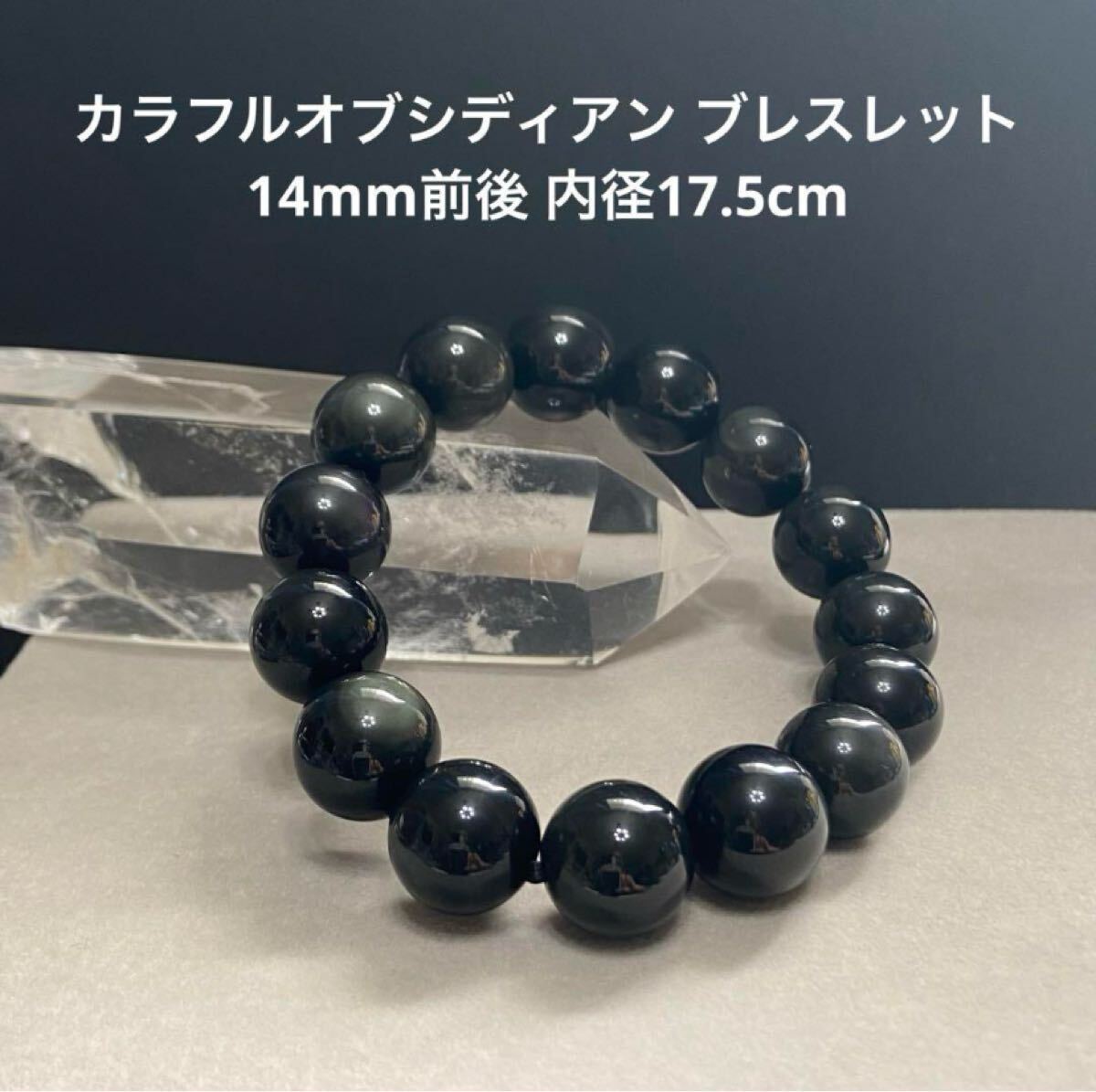 - D977 カラフルオブシディアン ブレスレット 14mm前後17.5cm