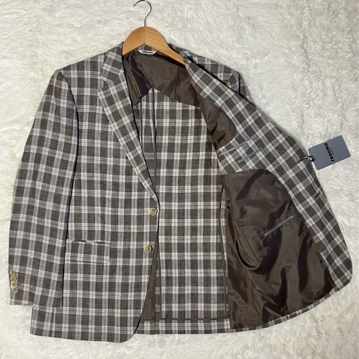 > renoma【新品タグ付き高級感】リネン100% テーラードジャケット チェック Lサイズ 羽織り ブレザー レノマパリス 麻 秋カラー 定価34800