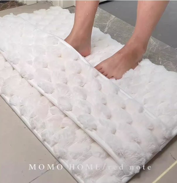 - バスマット マイクロファイバー素材 吸水力抜群 長毛 足の甲 ふわふわ肌触り ベージュ 速乾