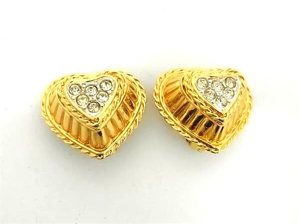 > ■美品■ NINA RICCI ニナリッチ ラインストーン クリップ式 イヤリング アクセサリー レディース ゴールド系 DK6710