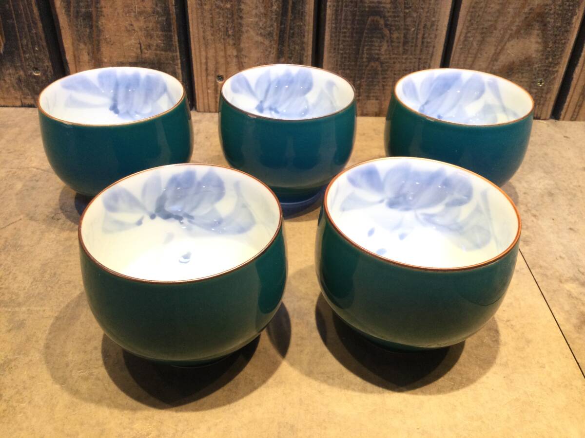 - 美品・保管品 お茶茶碗 5客セット グリーン系 茶器 湯呑 煎茶揃 茶器揃