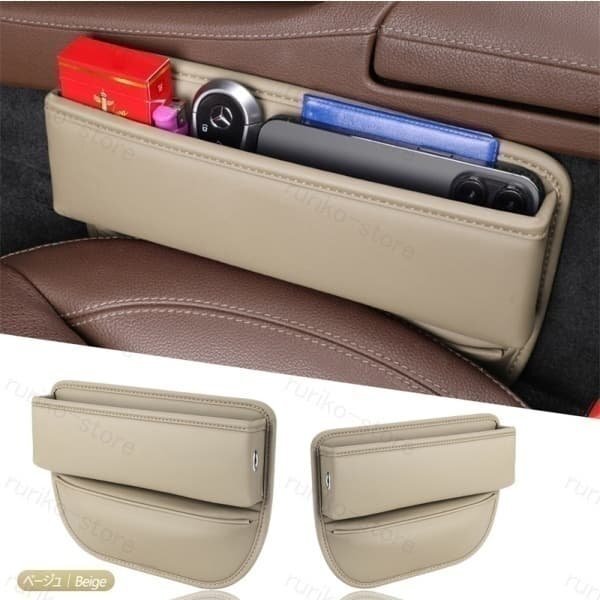 - スイフト ZC83S/ZD53S 車のシート 隙間ボックス左右2個 センター隙間埋め レザー 落下防止 小物入れ ベージュ(no cup)