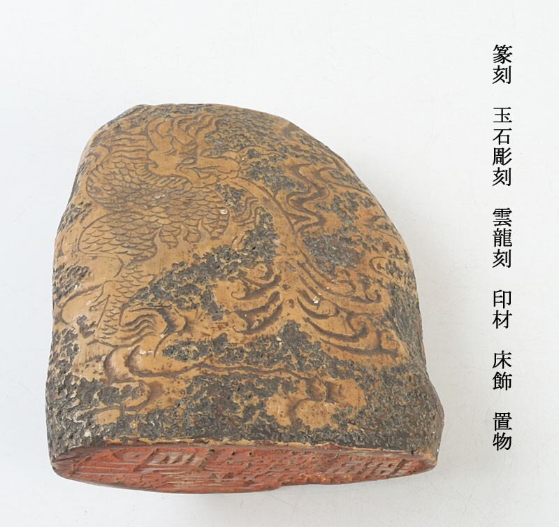 - 中国美術 篆刻 玉石彫刻 雲龍刻 印材 床飾 置物 古玩 VBFS