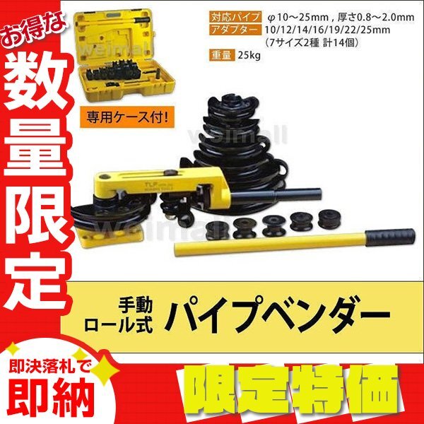 - 【限定セール】新品 パイプベンダー 10-25mm対応 アダプター14個付 手動 ケース付 ロール式 パイプベンダ パイプ 曲げ 加工 即決