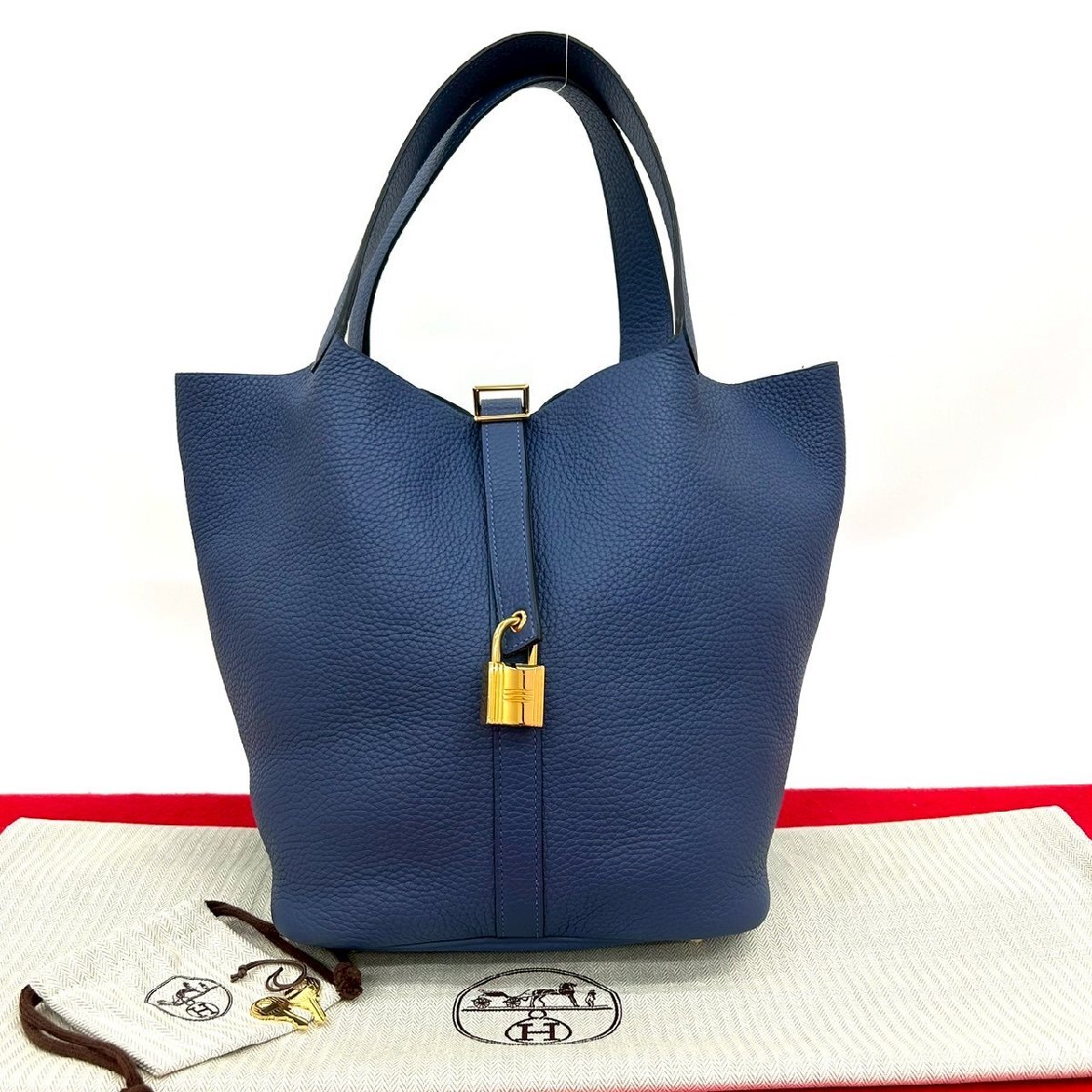 - 極 美品 袋付き C 刻印 HERMES エルメス ピコタンロック GM トリヨンクレマンス レザー ハンドバッグ トートバッグ ブルー 62402