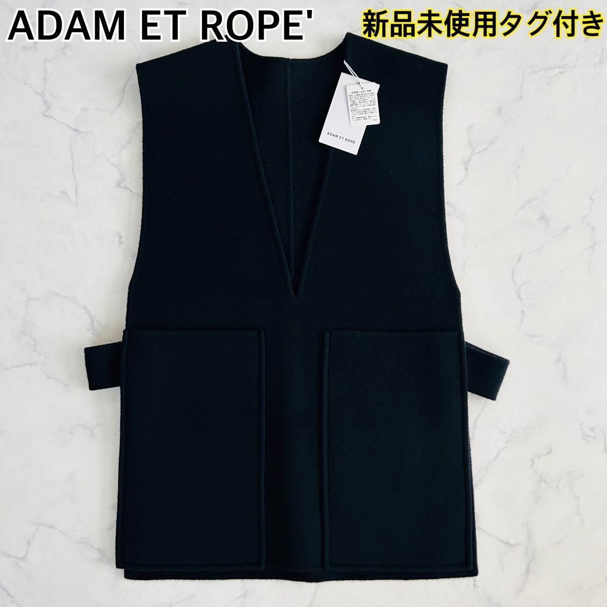 - 【新品タグ付】22AW 近年モデル ADAM ET ROPE' アダムエロペ Super140's スーパー140 リバージレ ベスト ブラック F フリー ブラック