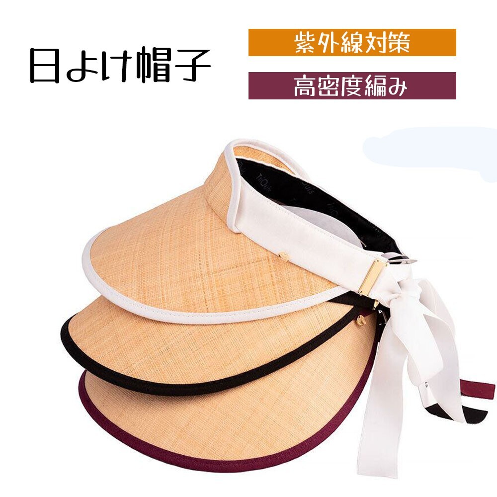 > ラフィアバイザー レディース 帽子 紫外線対策 UVカット 日よけ 小顔効果 天然草手編み 高品質 マダガスカル素材ファッション WBGYCUI-04