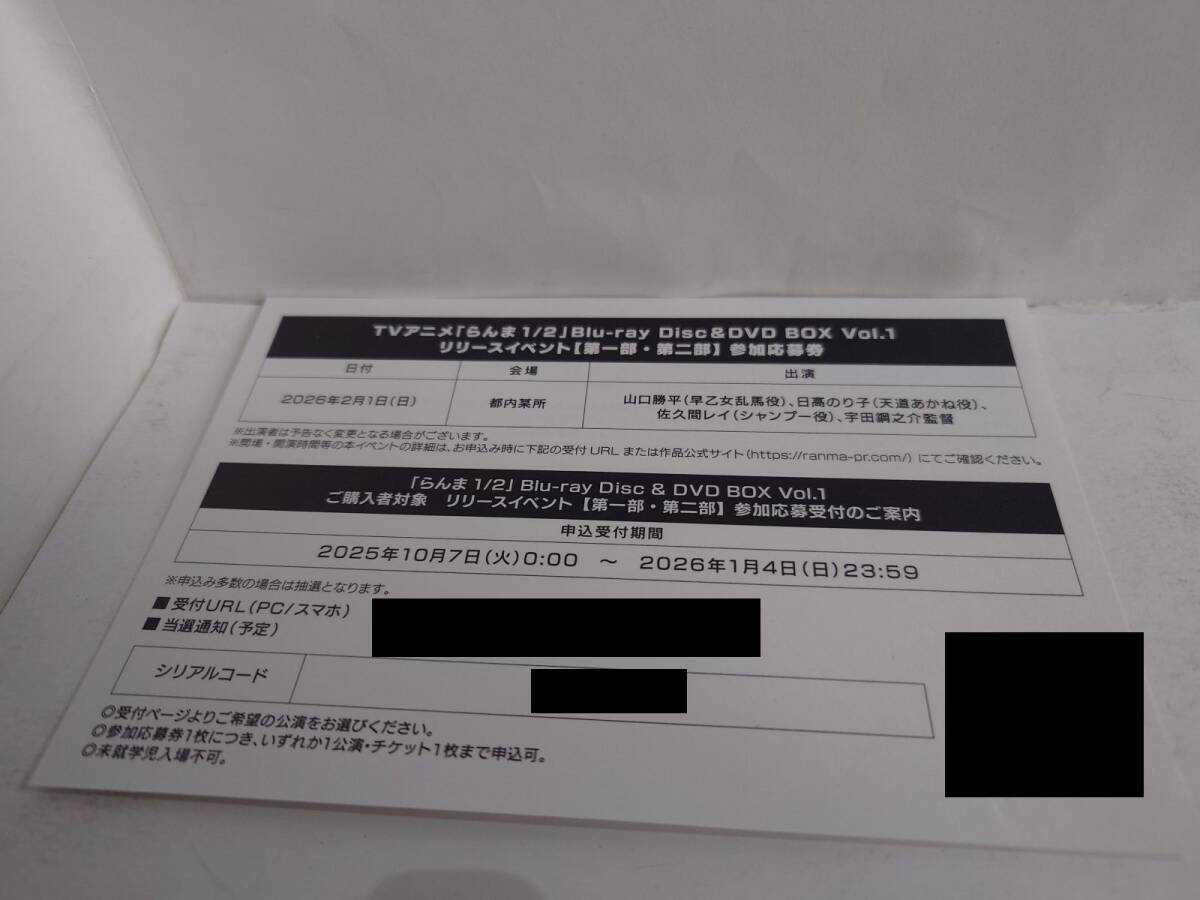 未使用シリアルコード■「らんま1/2」 Blu-ray Disc & DVD BOX Vol.1 リリースイベント【第一部・第二部】 参加応募券