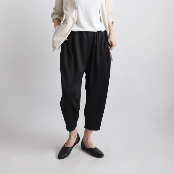 - 再制作 87cm シワ知らず 上質ジャージ伸縮ストレッチ生地 テーパード パンツ ロング ブラック黒 K55