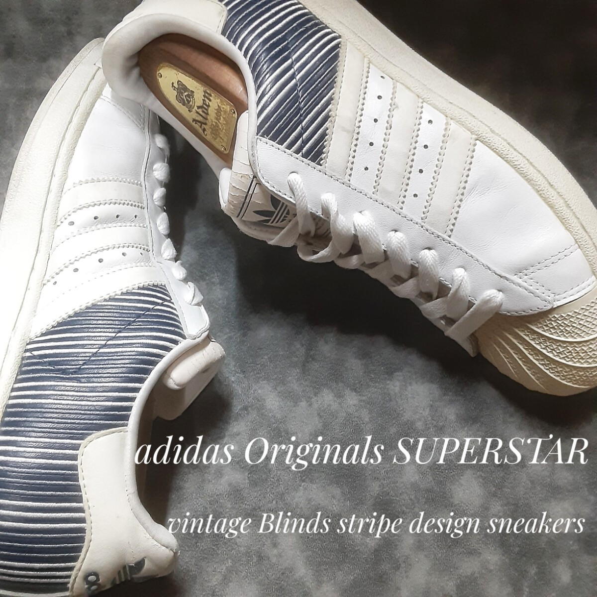 - 最値!希少08年製!ヴィンテージ!名作すだれストライプ!アディダス オリジナルス スーパースター高級レザー スニーカー!ホワイト!白黒 28cm