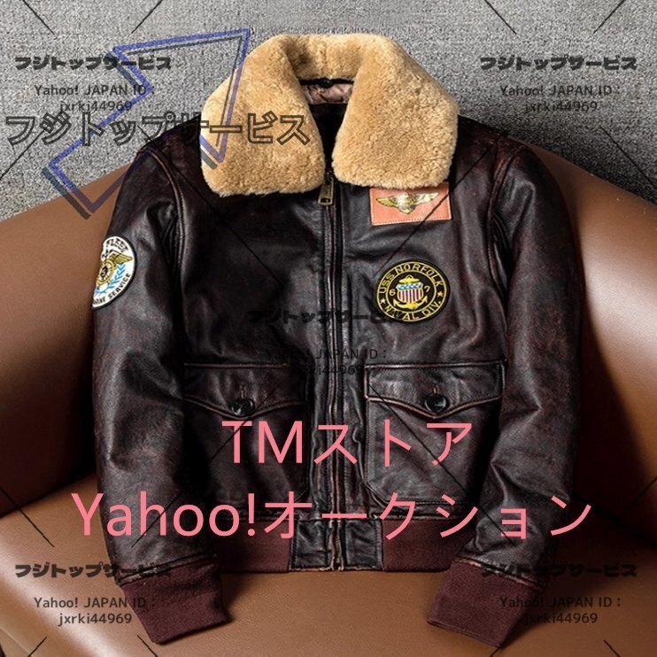 - 超人気★牛革 レザージャケット 中綿 革ジャン カウハイド フライトジャケット 本革 ウール襟 コート メンズファッション 刺繍 S~6XL