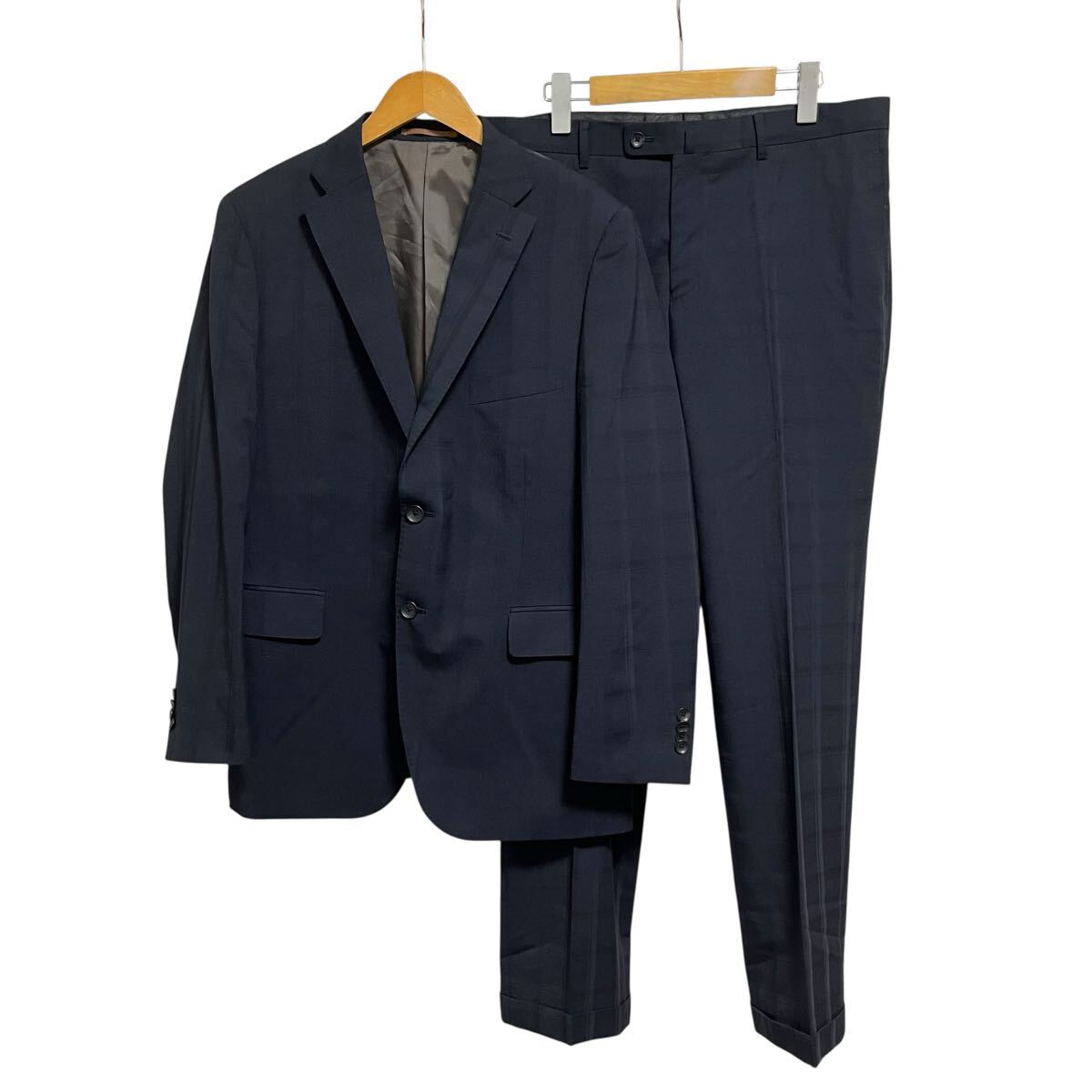 > ※SU2 PERFECT SUIT FACTORY シングルスーツ セットアップ ネイビー チェック 2Bジャケット スラックス コーデュラ生地 メンズXL相当