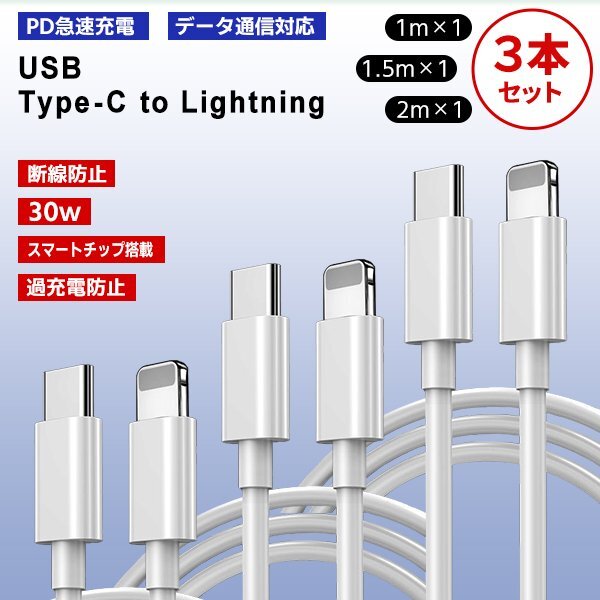 > [2]USB Type-C to Lightning ケーブル 1m 1.5m 2m 各1本 3本セット PD 急速充電 データ通信 データ転送 スマホ iPhone 充電コード 断線防止