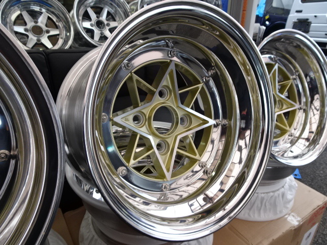 - リアル3Pスターシャーク(ゴールド)9J-14 114.3/4H 2本 旧車 街道レーサー