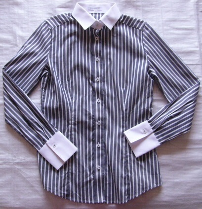 - ナラカミーチェ◆綿混長袖ブラウス★白とグレーストライプ★Ⅰ★9号~11号くらい★NARA CAMICIE