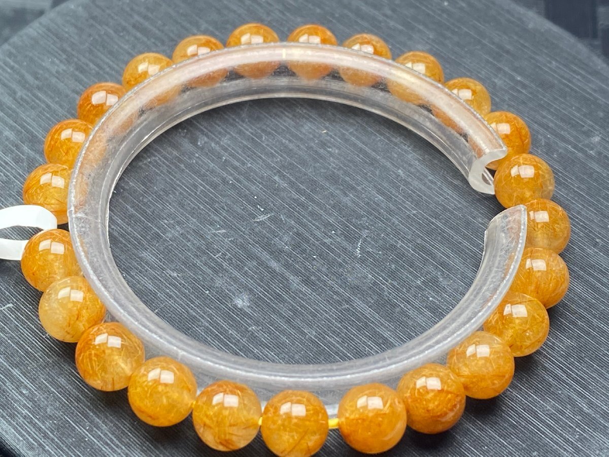 - 即決 0620a109 天然石★【45Aビーナスルチルクォーツ】★ブレス 7.8mm(新品)