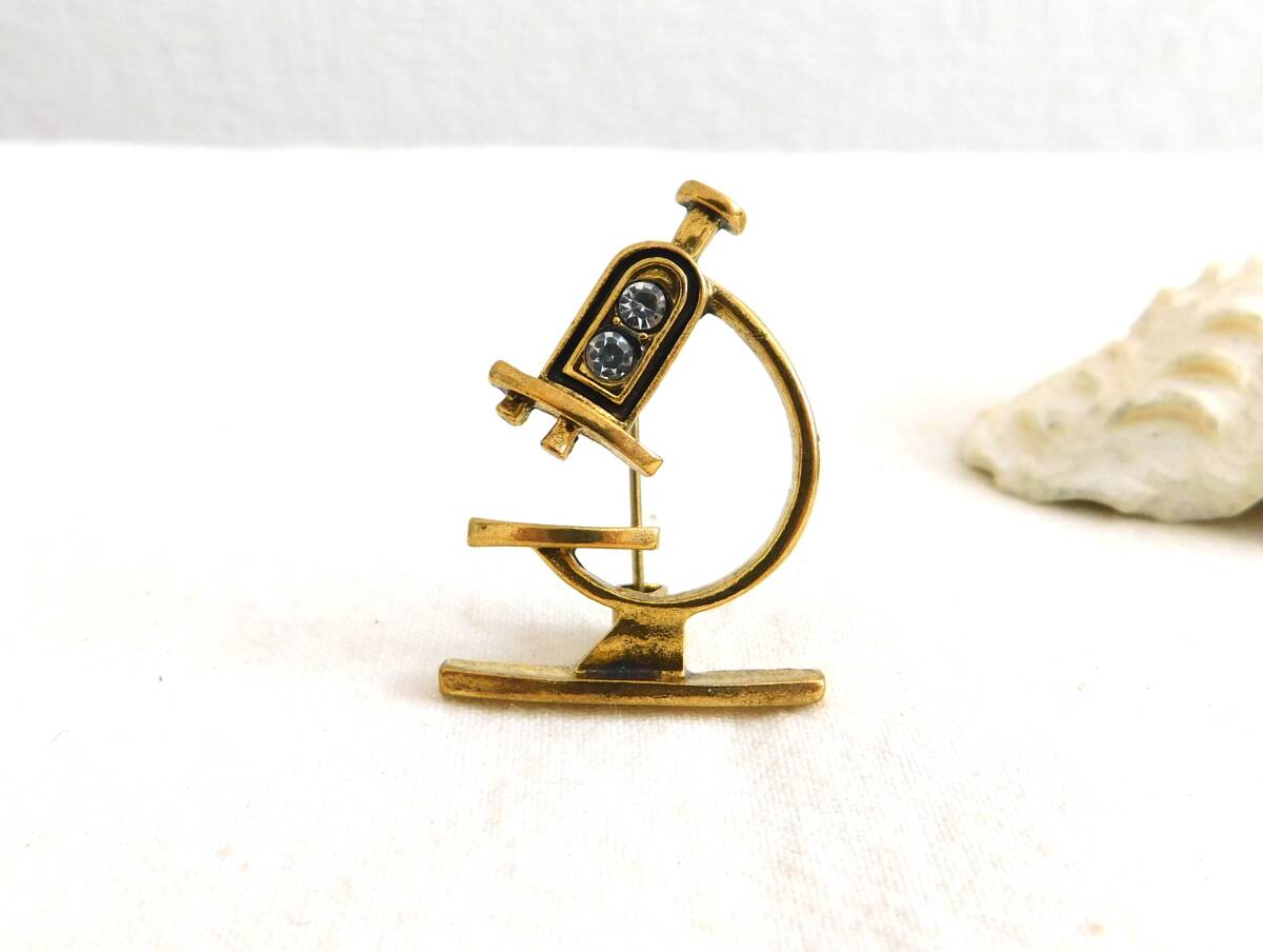 - 【新品】顕微鏡のブローチ 顕微鏡 ユニーク ラインストーン ゴールドトーン 小さなブローチ プレゼント 研究