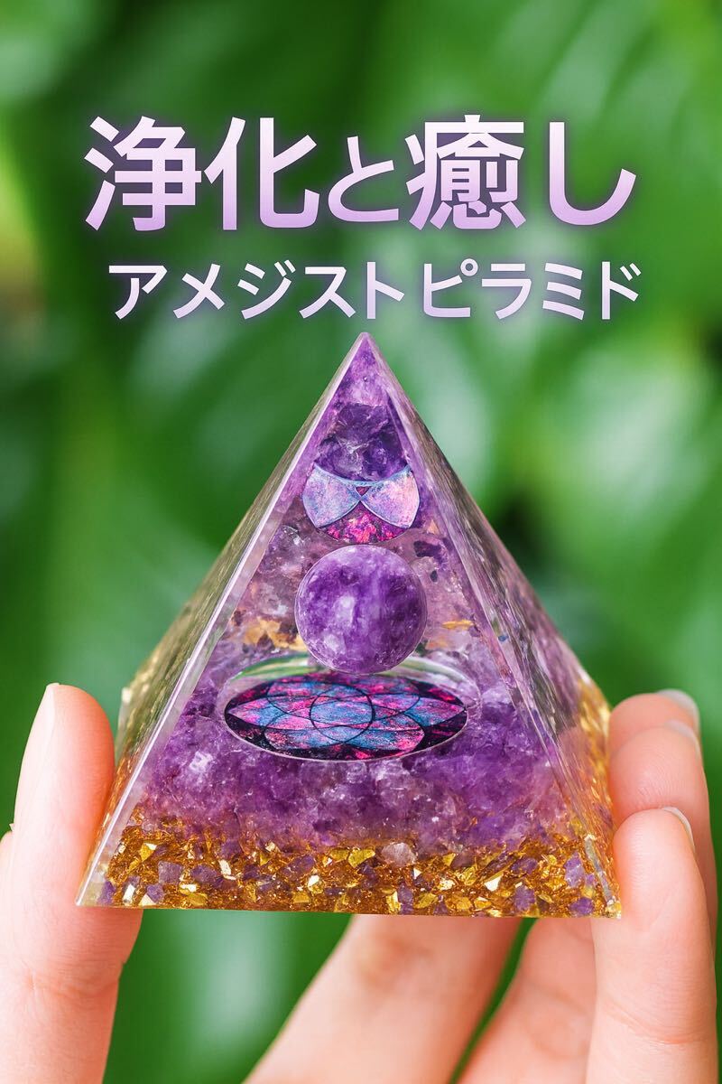 - 心を癒す アメジスト浄化ピラミッド/波動安定と直感覚醒 オルゴナイト ピラミッド 開運 風水 クリスタル 浄化 玄関 置物