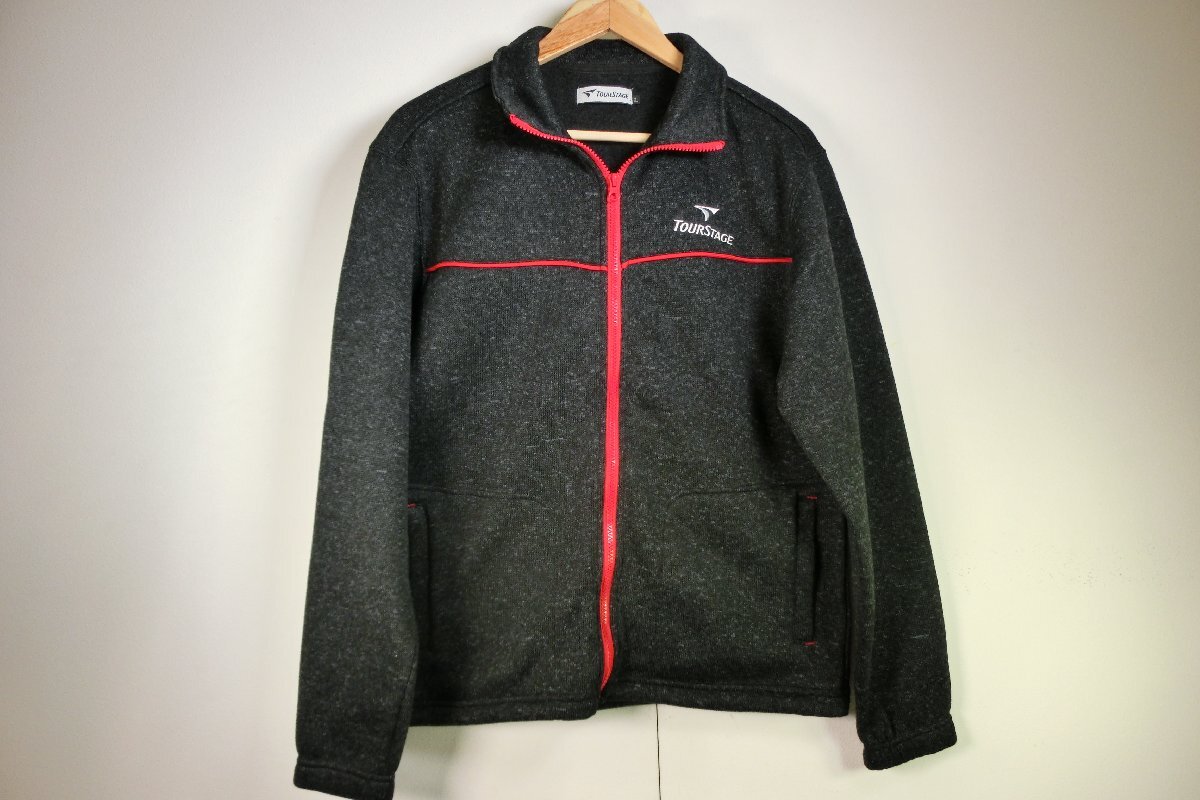 - ♪美品★TOURSTAGE/ツアーステージ(L)★メンズ・チャコール系ジップニットフリース長袖ブルゾン/ゴルフウエア