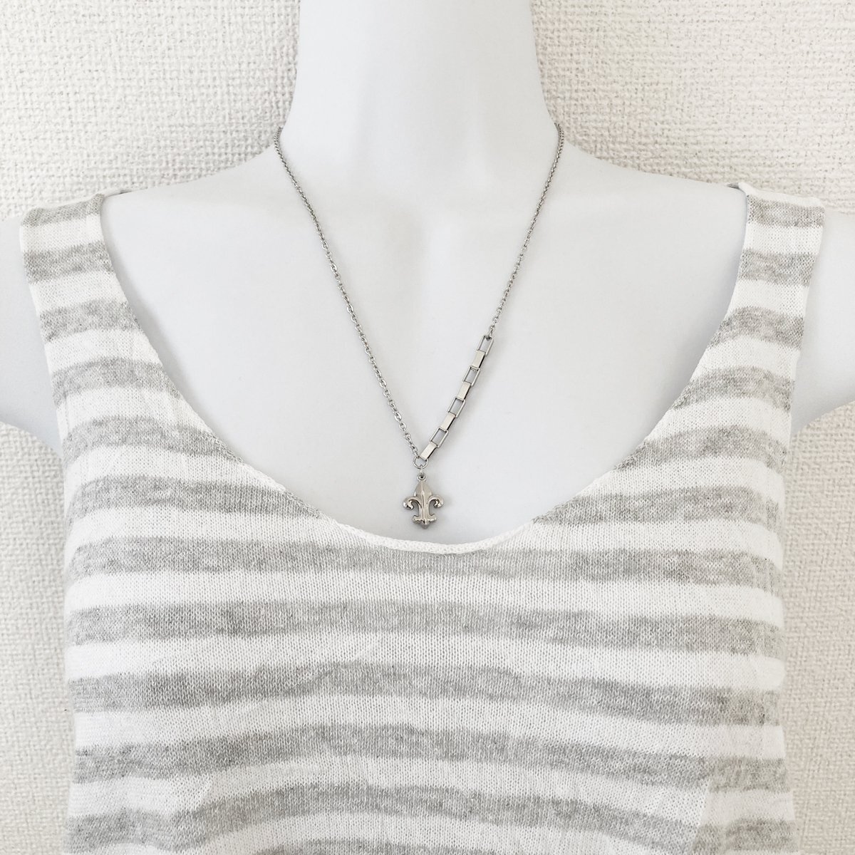 - チェーンがお洒落なステンレスネックレスミニ百合の紋章 チャームネックレス 50cm ST122
