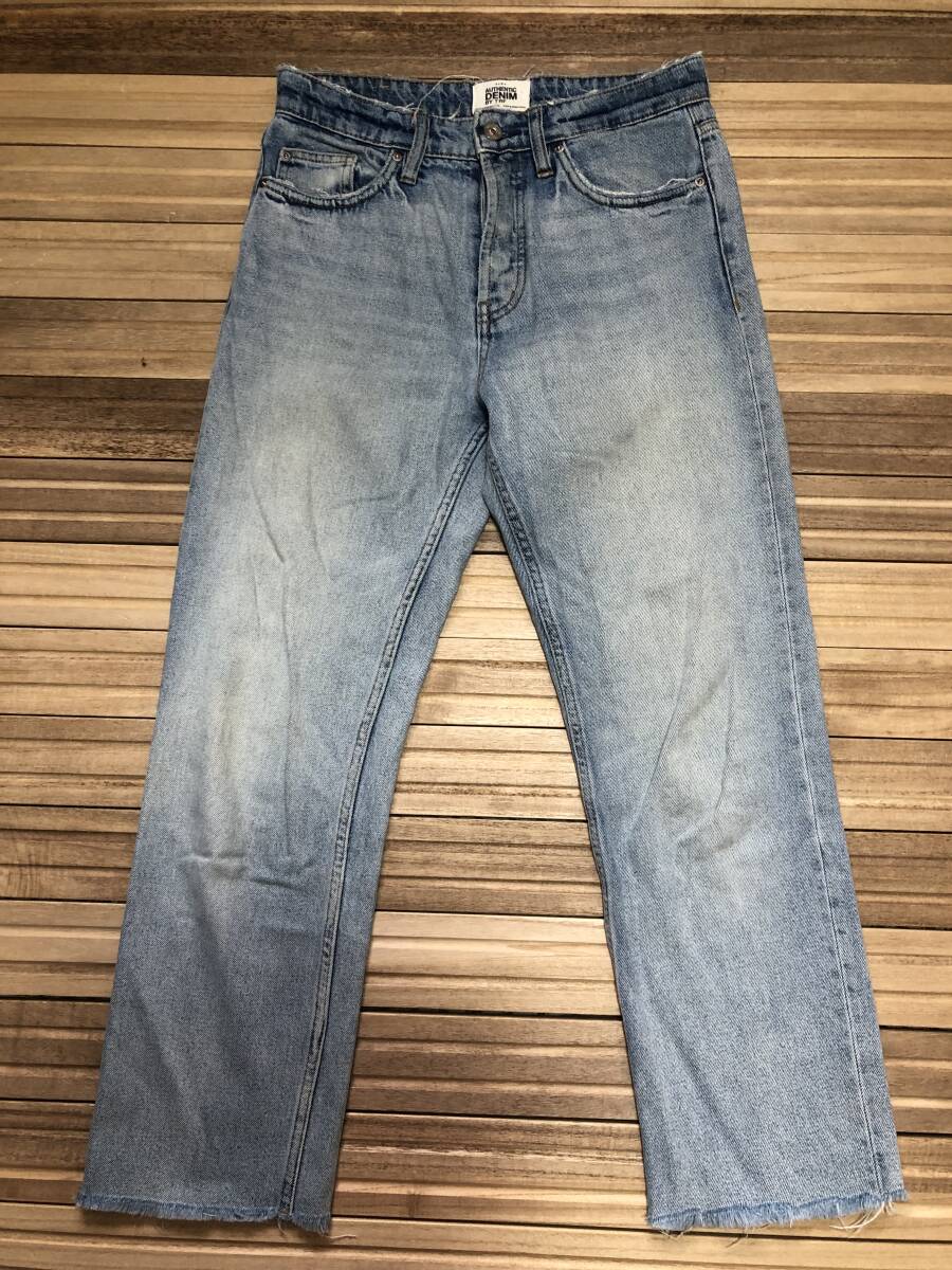 - ZARA ストレート ウォッシュ加工インディゴデニム ダメージ加工 インディゴブルー ボーイッシュ 切りっぱなし