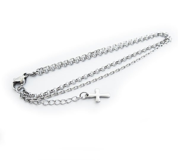 - ステンレスチェーンブレスレット 2連 SB07 全長約20cm(17+3cmアジャスター)