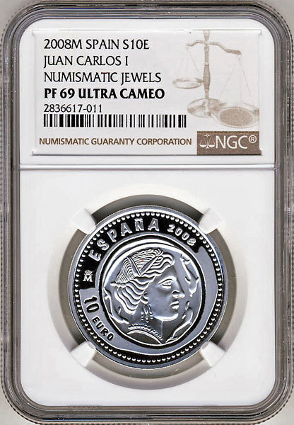 - ●スペイン 2008年 NGC PF69UC カルロス1世 / 名品ドラクマ 10ユーロ銀貨 ★トップグレード