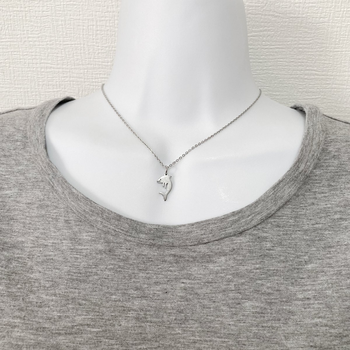 - ステンレスネックレス イルカ ドルフィン ミニペンダント 1.9mm幅40cm NM27