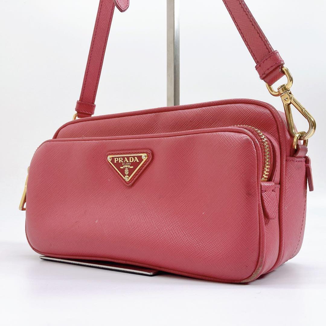 - 良品プラダ サフィアーノレザー カメラバッグ ショルダー 三角ロゴ ピンク