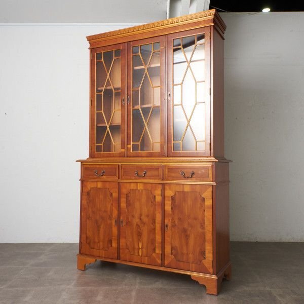 > IZ92331N★英国 エドワーディアン ブックケース 木製 イチイ 飾り棚 本棚 書棚 ガラス キャビネット アンティーク スタイル イギリス 鍵付