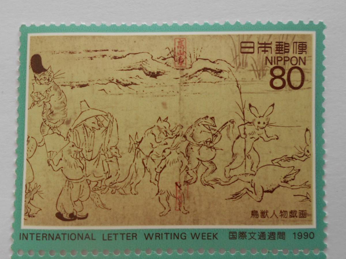 - 文通週間 1990 鳥獣人物戯画 未使用80円切手