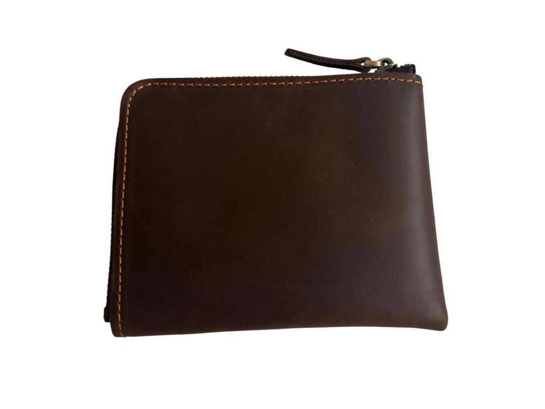 - 本革 ミニ財布 コンパクト ラウンドファスナー 小銭入れ 二つ折り財布 メンズ ブラウン